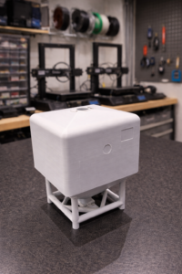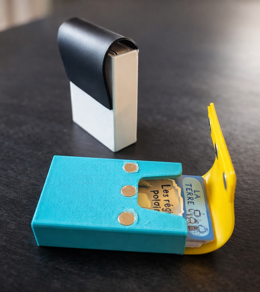Le design retenu est volontairement sobre et élégant, mais surtout pensé pour résister à un usage intensif. La boîte et le couvercle forment un ensemble monobloc imprimé en deux matériaux : le corps en PETG pour la rigidité, et le couvercle en TPU pour apporter de la souplesse et améliorer la prise en main. La fermeture est assurée par trois aimants intégrés, garantissant un maintien efficace tout en restant facile à ouvrir pour un enfant.
